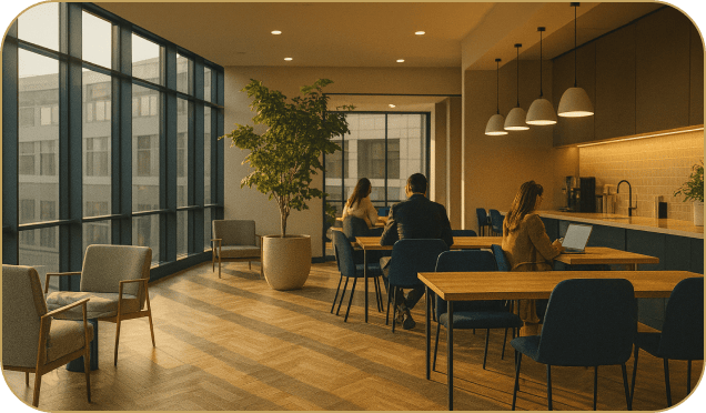 Open, flexible areas attract freelancers, consultants, and small enterprises seeking professional community